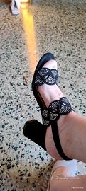 sandalo da donna nero con strass, n. 38, tacco largo.