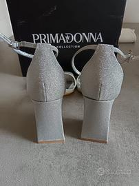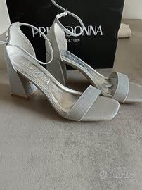 Sandalo donna con tacco colore argento nr. 38 nuovo mai indossato causa misura errata.