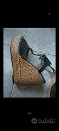 Sandalo donna con zeppa altezza cm 12, comodo plateau, usata pochissimo, marca Solo Soprani, n. 37. colore grigio/turchese,