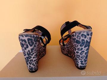 Sandalo donna con zeppa con stampa leopardata. Altezza plateau 3cm 12cm. Numero 39