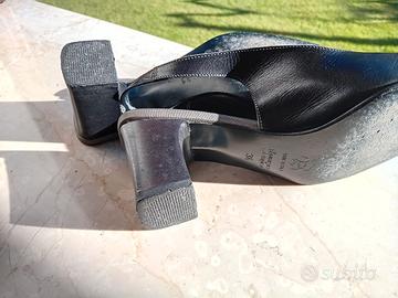 Sandalo donna Kammi 36 nero pelle e suola cuoio lavorazione artigianale tacco 5 cm