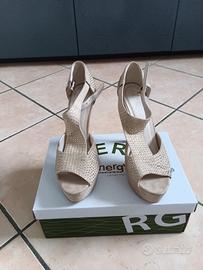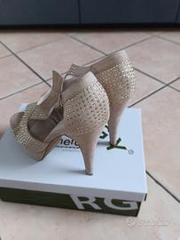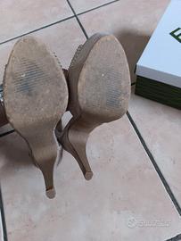 sandalo zeppa donna n 40 scamosciato colore beige con glitter altezza zeppa 3 cm altezza tacco 13 cm in ottimo stato usate 1 volta