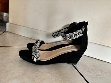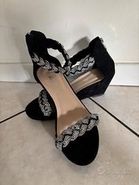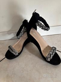 Sandalo gioiello estivo, tacco 6 cm, colore nero numero 39, cerniera posteriore colore argento.