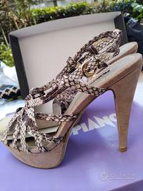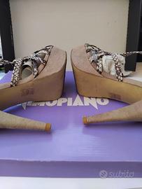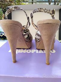 Sandalo con zeppa e tacco.alto. indossato 3volte. Non posso piu portare tacchi. Camoscio beige e disegno animalier. N 37.