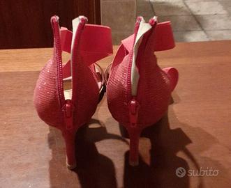 Sandalo donna allacciato rosso lurex Loraferres Tacco 5 Numero 38. Usato in ottime condizioni, utilizzato in pochissime occasioni.