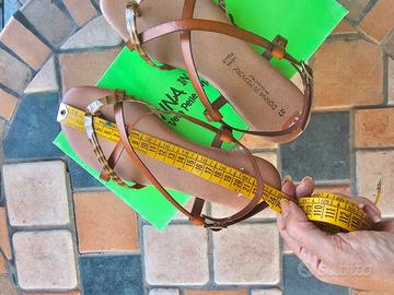 vendo sandalo donna basso tipo schiava n.37 marrone vera pelle lavorazione artigianale nuovo con scatola
