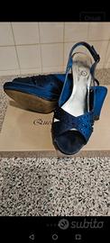 Sandalo donna con tacco Queen Helena. Indossato una sola volta. Misura 39. materiale raso colore blu marino