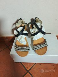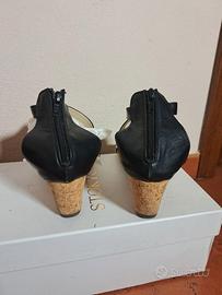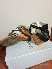 SANDALO donna zeppa nera pelle con strass 39 eu