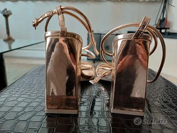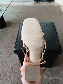 Sandalo dorato con tacco largo