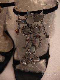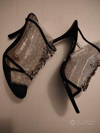 Sandalo elegante da donna marca Bata numero 38, nero con strass, tacco 10 cm.