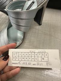 Sandalo a ciabatta in raso azzurro Pur troppo un po rovinato sulla parte del tallone Vendo per chiusura negozio rimanenze magazzino Prezzo trattabile