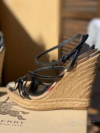 Vendo bellissimi sandali espadrillas Burberry con zeppa in rafia numero 36. Altezza zeppa 11 cm. Dustbag e scatola originale. Usati pochissimo