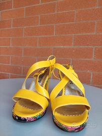 Sandalo estivo giallo con motivo floreale,n.36