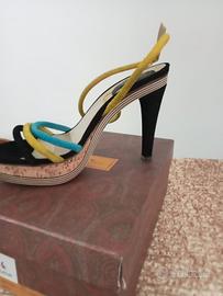 sandalo etro 3455 pelle specchio celeste giallo