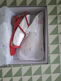 Vendo per conto della mia compagna, sandalo flat Stelio Malori in pelle morbida colore rosso corallo, taglia 37, calzata regolare, mai utilizzato. Confezione integra.