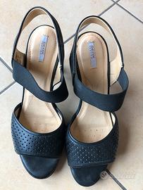 Sandalo Geox pelle nera tacco cm. 8, Tg 38. Il sandalo è stato indossato solo una volta vedere la foto della suola, senza scatola.
