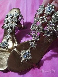 Sandalo gioiello Nuovo, con tacco alto, Mauro Pollini originale color oro con strass N 38