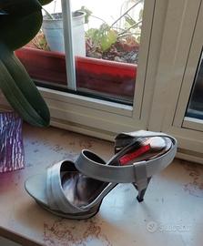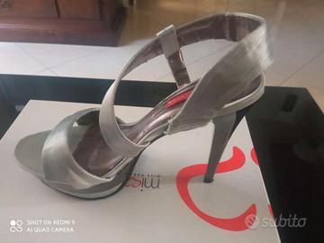 Scarpe donna tacco alto - SANDALO GIOIELLO in tessuto satin marca "Miss Roberta" calzatura italiana, numero 37, colore grigio argento, tessuto satinato, praticamente nuovo, con antiscivolo messo dal calzolaio, indossati una volta per una comunione.