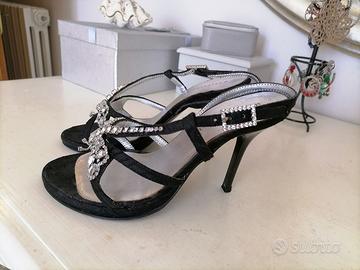 Creazione di Marinella Pauli che realizza calzature personalizzate.Sandalo gioiello impreziosito da cristalli Swarovski ,usato per cerimonia. Tacco 10 numero 35. Prezzo trattabile