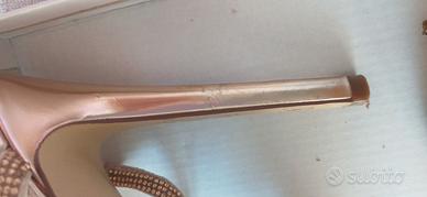 Sandalo guess cin piccoli diamantini. Perfetto per cerimonia. Alto 12 cm. Taglia 39. Cinturino alla caviglia. Piccolo plateau. Presenta dei graffi da utilizzo. Ritiro Roma zona Eur/Laurentina