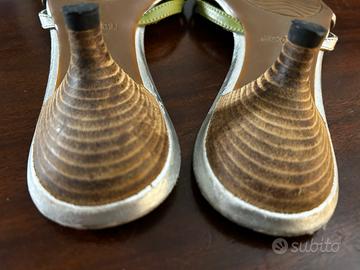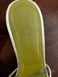 Sandalo Hogan verde e argento Tacco basso In buone condizioni tranne pochi segni sulla punta e sul tacco