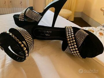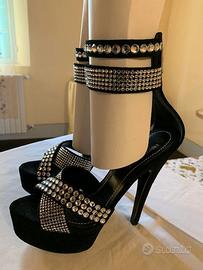 Sandalo in pelle scamosciata con Swarovsky taglia 38,5 italiana, utilizzato 2 volte e in ottimo stato, tacco 10 cm