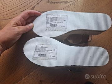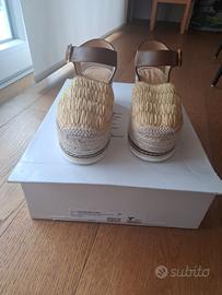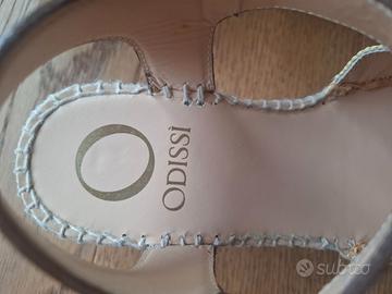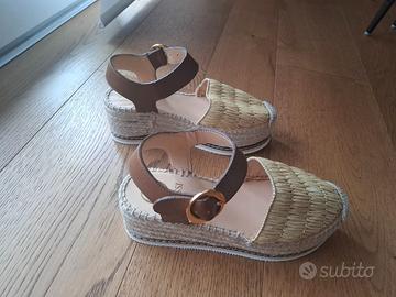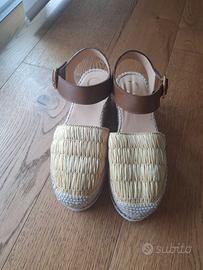 endo sandalo modello espadrillas con zeppa in corda e punta chiusa ricoperta in rafia. Chiusura alla caviglia. Indossate 1 sola volta ma non sono nel mio stile. Numero 37 Marca Odissi