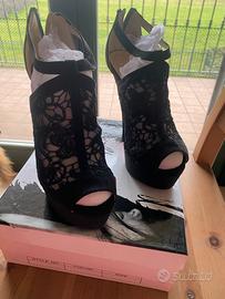 Sandalo con tacco alto in pizzo , indossato solo un paio di volte