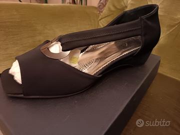 Vendo Sandalo Valleverde Nicole nero, zeppa 30, in tessuto elasticizzato, nuovi ancora confezionati.