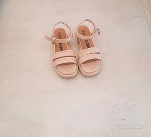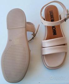Interno in pelle. Suola in gomma con zeppa di 4 cm. Mai indossati.