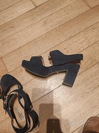 Sandalo camoscio nero l'autre chose originale con zeppa fibbie dorate. N. 39qualche segno di usura