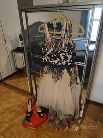 Usato una sola volta in comune per matrimonio Bellissimo,in pizzo nero se interessa ho anche abito abbinato cerimonia tg 42