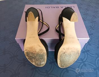 Vendo sandalo Lella Baldi scamosciato nero tg 39 con plateau in buone condizioni. Tacco alto 11 cm