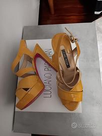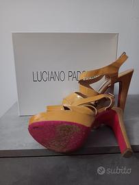Sandalo beige Luciano Padovan con suola fucsia. n39. tacco 14 con plateau 3 cm.Indossato pochossime volte.