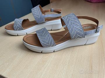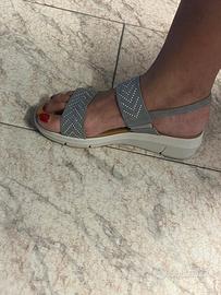Fasce in camoscio grigio (interno in pelle) e motivo brillante applicato.