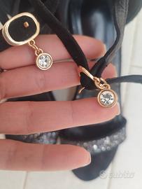sandalo nero brillantinato con chiusura alla caviglia e tacco ( Cira 8 cm) quadrato, brillantinato nero e argento n 39.