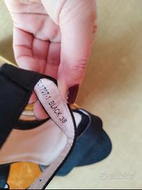 Taglia: 38 Colore: Tomaia in tessuto nero scamosciato con cinturino alla caviglia regolabile. Dettaglio Unico: La zeppa presenta un bellissimo motivo a righe pastello/arcobaleno e rifiniture in corda tipo espadrillas.