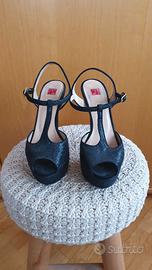 Sandalo Nero, marca Ballin, N 37, tacco 14cm con plateau 4cm. Buone condizioni