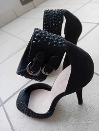 1 paio sandali bellissimi donna neri con perline nere e con laccetto al collo piede n. 37 tacco 10 cm.