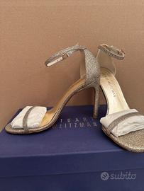 Sandalo elegabte usato solo in occasione di un matrimonio, come nuovo. Colore oro opaco vedi foto per dettaglio materiale e colore. Sempre attuale. Pagati diversi anni fa piu di 400 euro.
