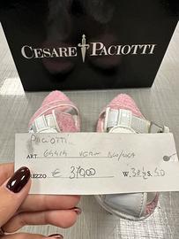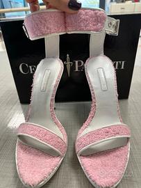 Sandalo con tacco alto 5 cm innvernice bianca e “spugna” rosa Vendo per chiusura negozio di scarpe Prezzo trattabile