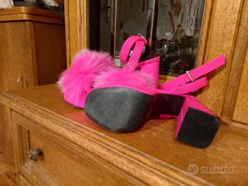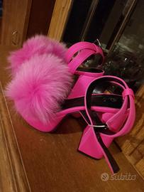 sandalo colore Pink con pelliccia sintetica, chiusura alla caviglia. Mai indossate, taglia 36