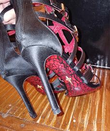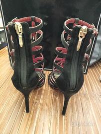 Sandalo alto di raso nero di Casare Paciotti n 36 con scatola originale e tacchetti di ricambio originali