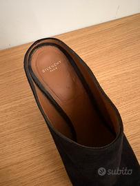 Sandalo sabot originale Givenchy Paris in pelle scamosciata con punta aperta e grosso tacco in plexiglass, taglia 39.