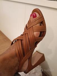 Sandalo con intrecci in pelle marrone tacco 8 cm numero 38