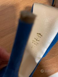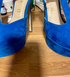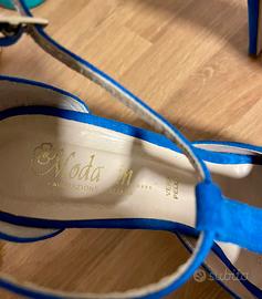 Bellissimi sandali con plateau e tacco a spillo, perfetti per una serata speciale. Sono in camoscio blu elettrico e hanno un design elegante e raffinato.