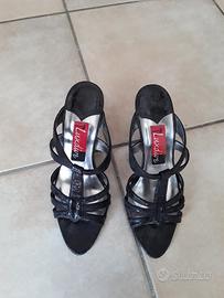 Sandalo nero con fasce ad incrocio e con dettagli vernice, molto eleganti! Tacco 8cm e numero 35. Marca LuxDive. Usate pochissimo.