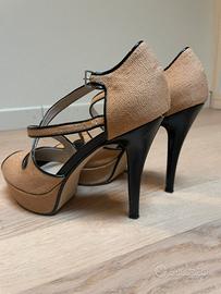 sandalo open toe marca GIANNI MARRA con plateau, color biscotto, 38, tacco 12, valore nuovo E 249,00, indossato 2-3 volte