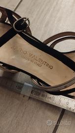 sandalo scamosciato nero e argento. soletta un po' scollata ma sistemabile. numero circa 37 ( non indicato).