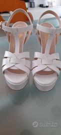 Sandalo Vera Miller, usato 1 sola volta, n.38, in pelle bianca, platou + incrocio, tacco 13 cm. Confortevole.